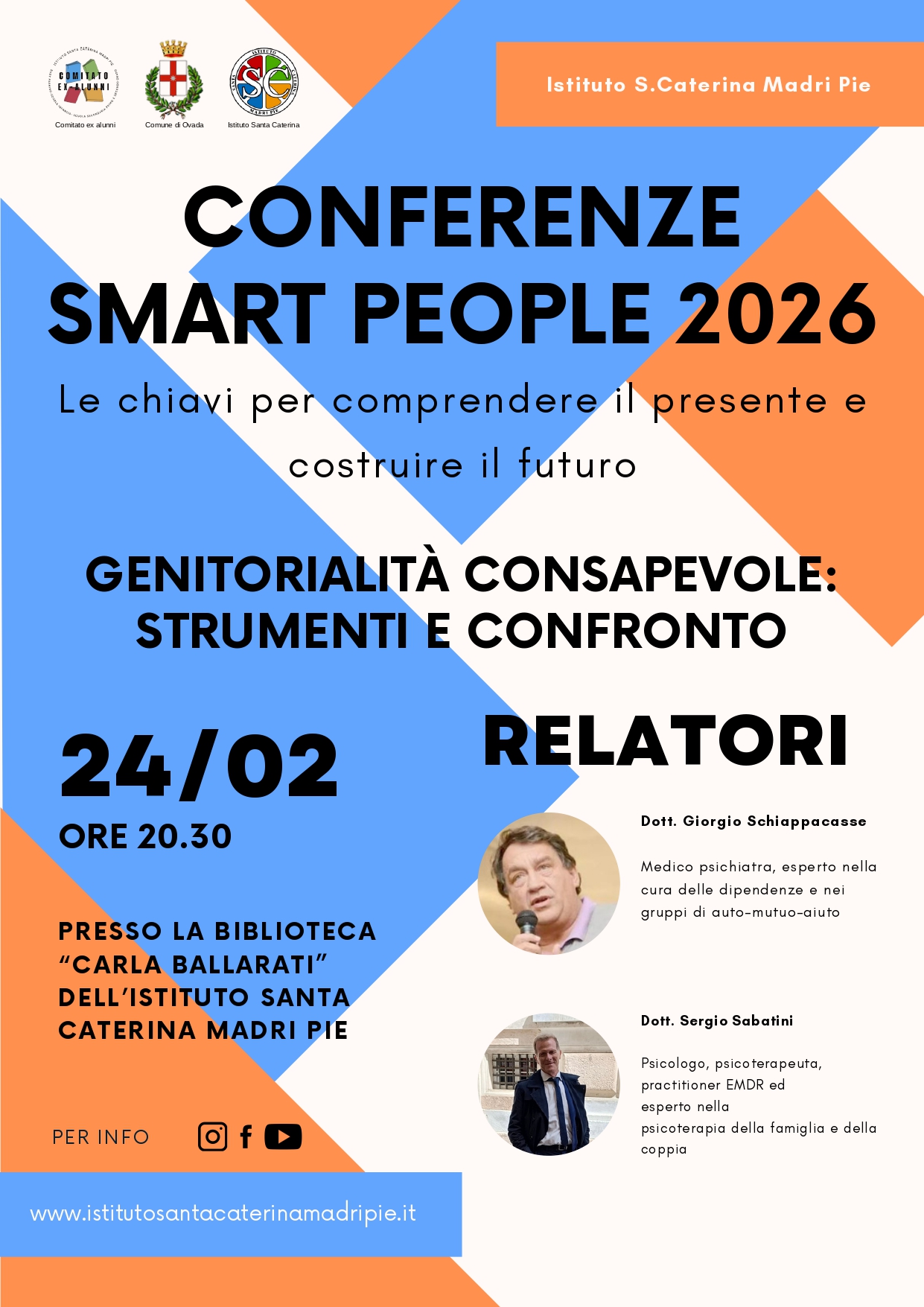 Genitorialità consapevole: strumenti e confronto Presso la biblioteca "Carla Ballarati" dell'Istituto Santa Caterina Madri Pie alle ore 20:30 Relatori: Dott. Giorgio Schiappacasse e Dott. Sergio Sabatini Per info www.istitutosantacaterinamadripie.it