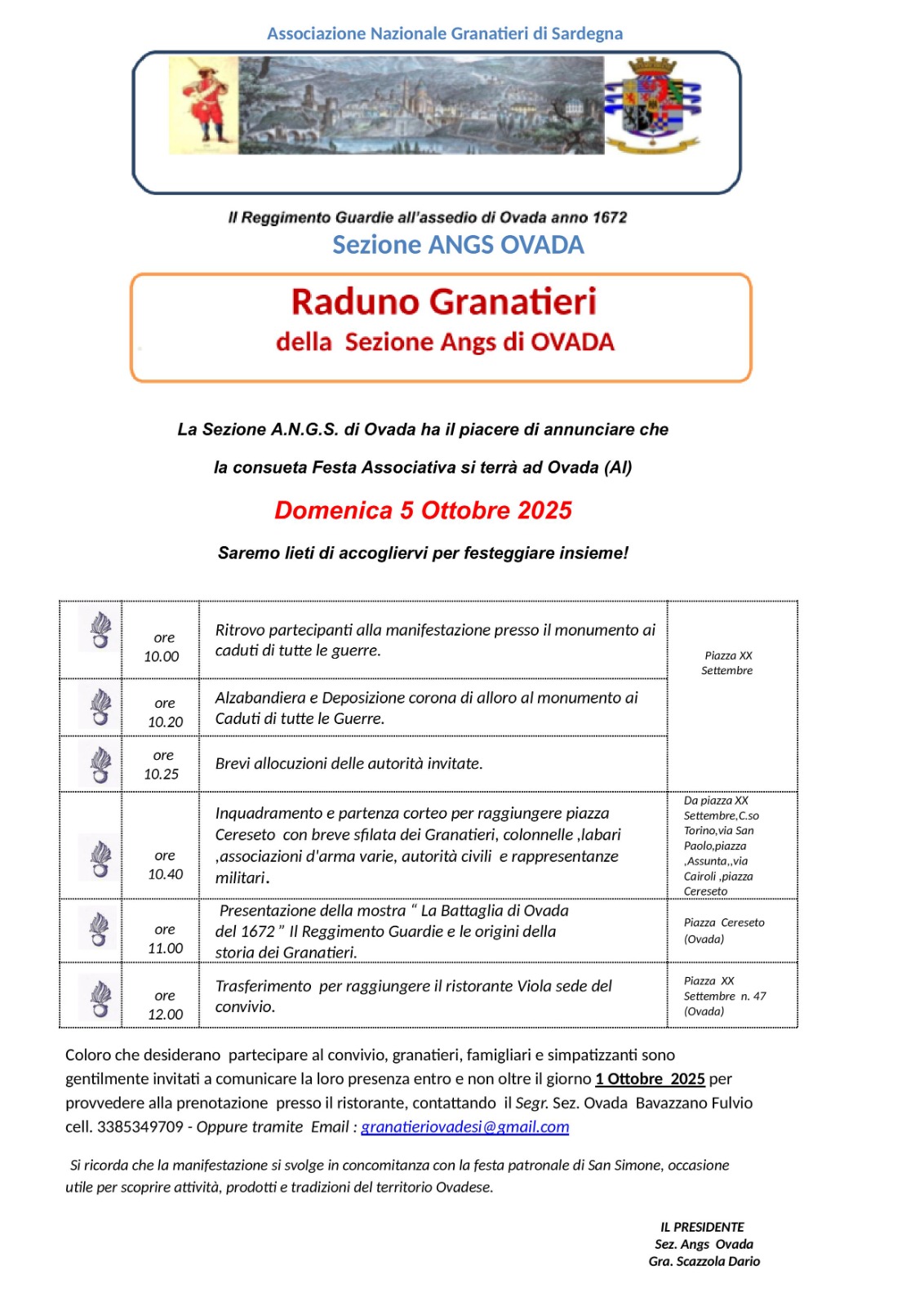 La Sezione A.N.G.S di Ovada ha il piacere di annunciare che la consueta FESTA ASSOCIATIVA si terrà ad Ovada domenica 5 ottobre. Ore 10:00 ritrovo partecipanti presso il monumento Ai […]