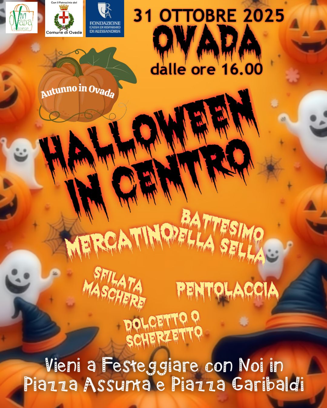 Dalle ore 16 presso Piazza Assunta e Piazza Garibaldi Mercatino, sfilata delle maschere, pentolaccia, dolcetto o scherzetto