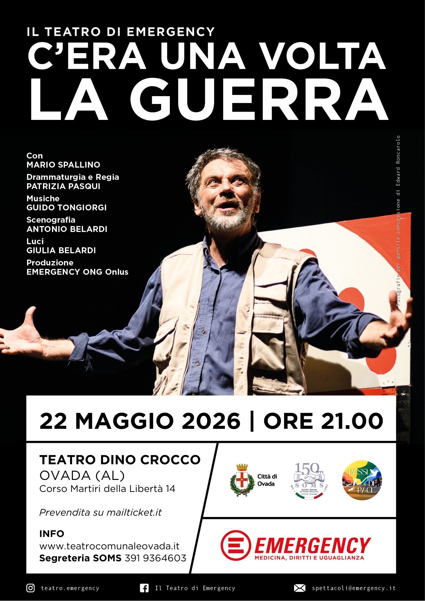 Alle ore 21 presso Teatro Dino Crocco Prevendite su mailticket.it Con Mario Spallino, Patrizia Pasqui, Guido Tongiorgi, Antonio Belardi, Giulia Belardi Info www.teatrocomunaleovada.it Segreteria SOMS 391 9364603