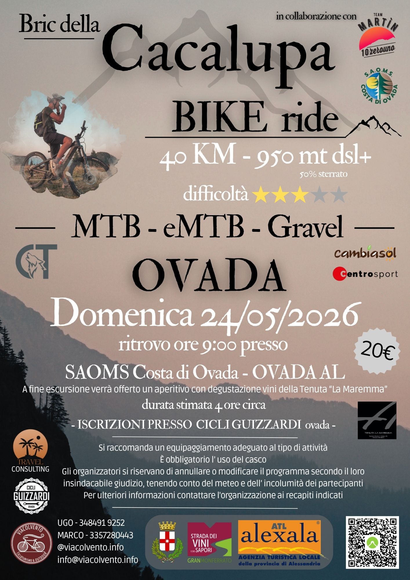 Ritrovo alle ore 09:00 presso SAOMS di Costa d'Ovada A fine escursione aperitivo con degustazione vino Info 348 4919252 - 335 7280443 - [email protected]